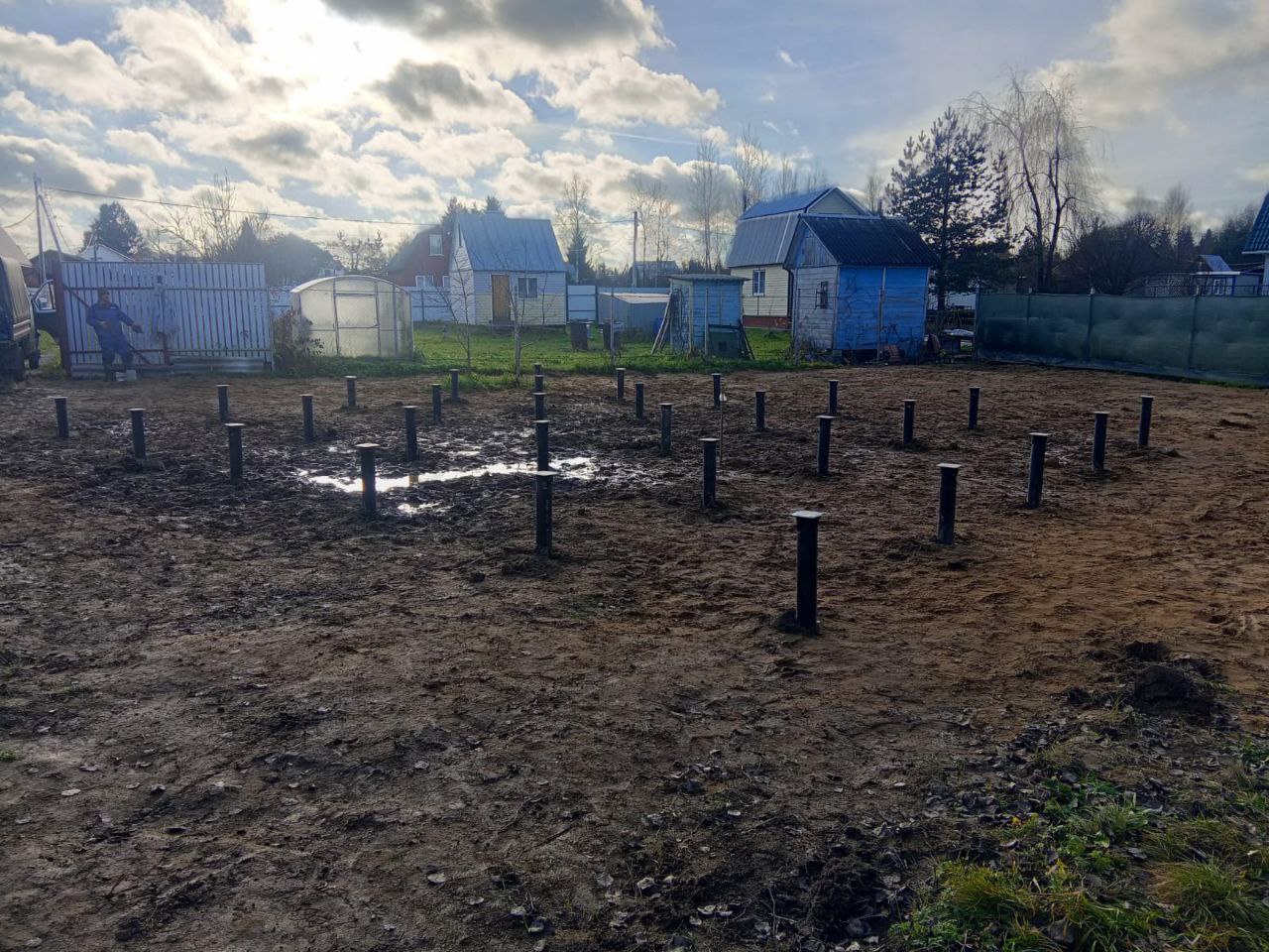 —Монтаж 30ти свай для дома 8х10 с расстоянием между сваями не более 2ух метров